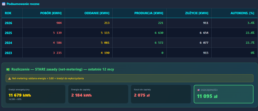 - Analizę sezonową: Możesz porównać, o ile więcej energii zużywasz zimą (ogrzewanie) w stosunku do lata, co pozwala na lepsze zarządzanie domowymi finansami.